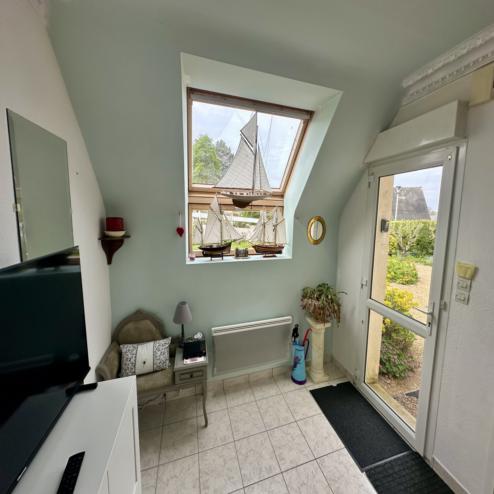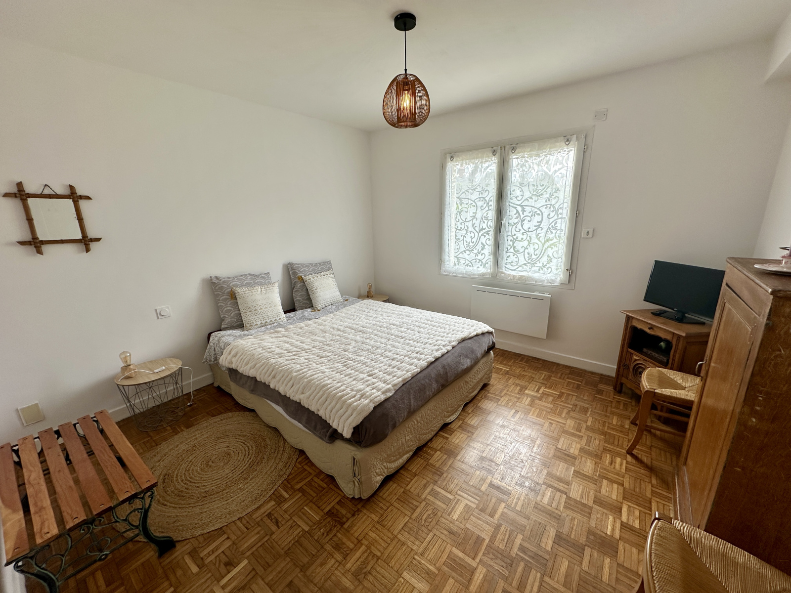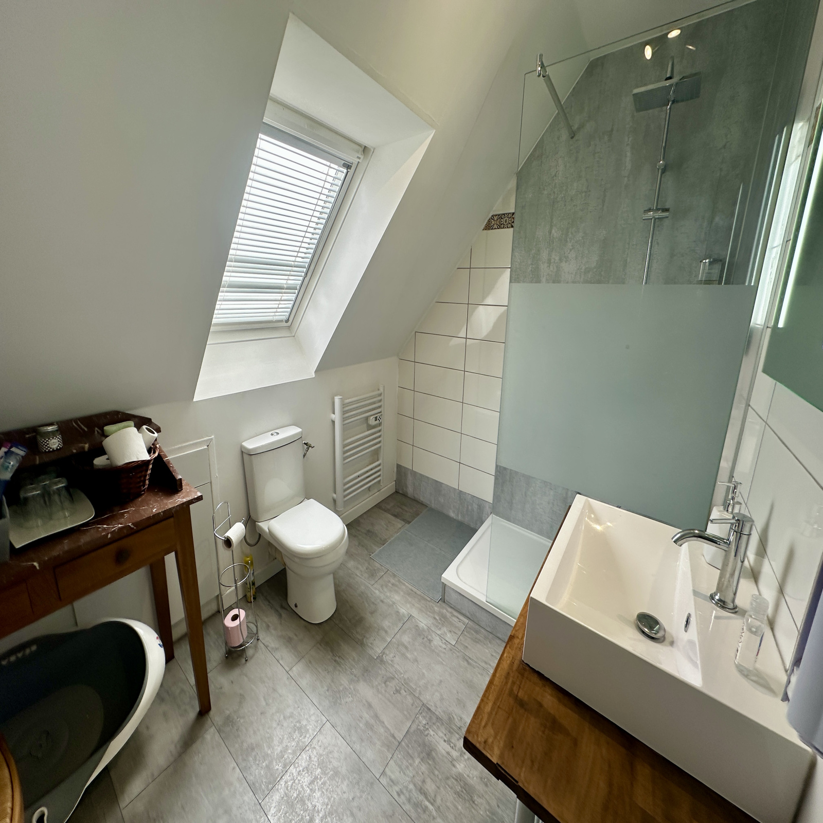 Un couloir distribue 3 belles chambres, une salle d’eau avec WC ainsi qu’un grenier offrant un espace de rangement complémentaire.
